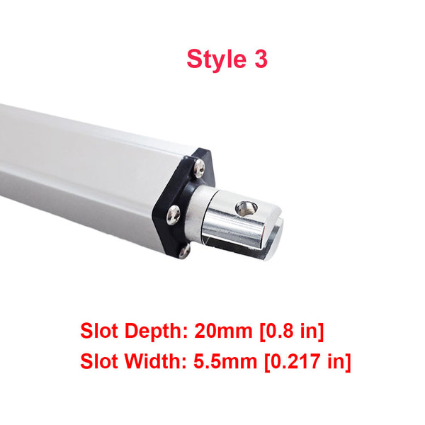 3. The front connector style of the linear actuator can be customized: the default is an open hole connector, which can be customized with slotted connector, internal thread connector, etc. And you can provide drawings for customization. If you need customization, please click here to purchase the customized option.