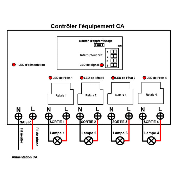 This receiver is an electric device with 4 channels AC power outputs, it and the transmitter form a wireless remote-control system. This system may be used in all types of industry automation, agriculture, business, home, factory, house, farm, garage, vehicle, ship, aerial vehicle, etc. It can remote control different AC equipment on land, water, and air, such as lights, doors, windows, lamps, sockets, locks, sirens, outlets, heaters, motors, fans, winches, curtains, blinds, linear actuators, electric solenoid valves, and security alarm systems. The applications are endless.