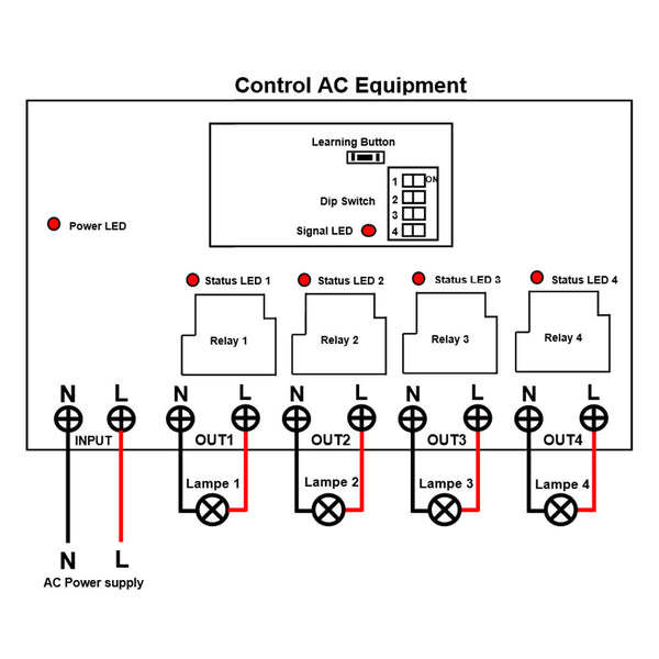 The receiver can be used to control AC 110~240V (110V/120V/220V/240V) equipments.