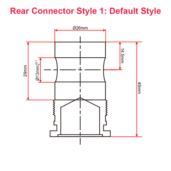 The diameter of the mounting holes for the front and rear connectors: 13mm [0.512 in]