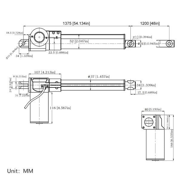 Rretraction Length: When the linear actuator is fully retracted, the center distance between the two mounting holes is 1375MM.