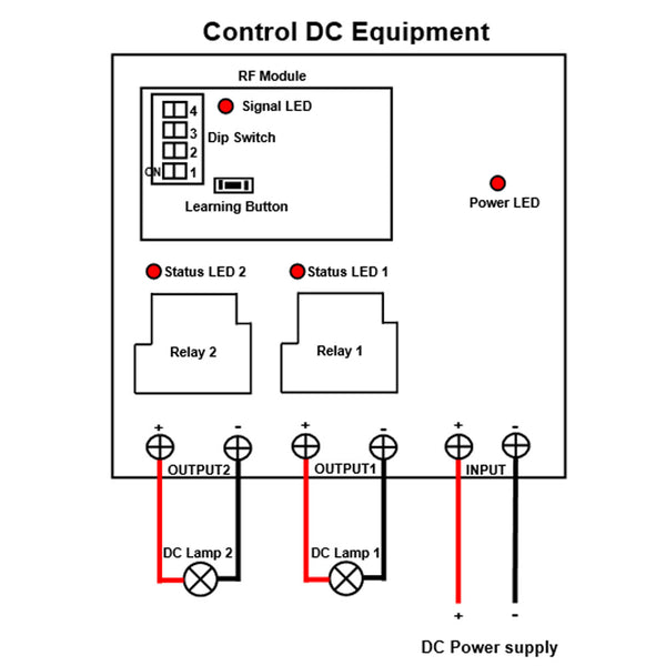 The receiver can be used to control DC equipment with a voltage in the range of 10~80 VDC.