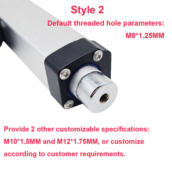 3. The front connector style of the linear actuator can be customized: the default is an open hole connector, which can be customized with slotted connector, internal thread connector, etc. And you can provide drawings for customization. If you need customization, please click here to purchase the customized option.