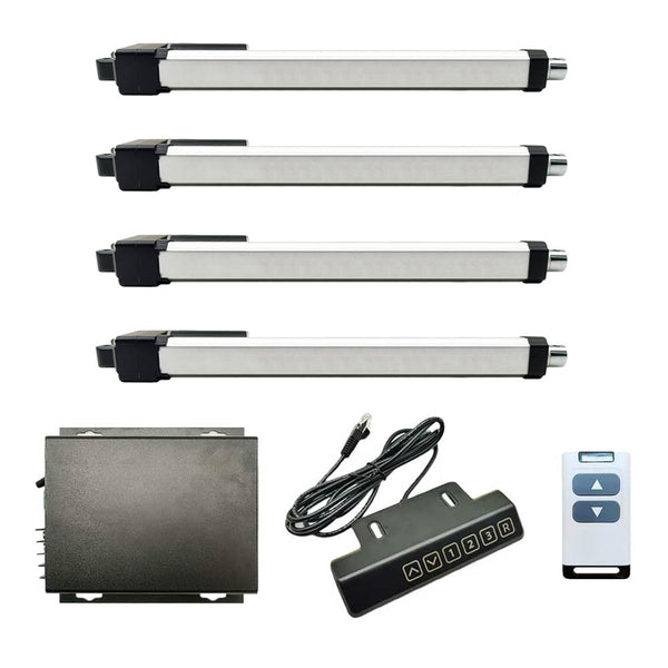 If you want to use multiple linear actuators to raise and lower an equipment, for example two, three or four electric actuators. Since the high-speed DC motors in electric actuators cannot run at exactly the same speed, so the movement speed of the electric actuator will also be different. When multiple electric actuators work at the same time, their actual speeds cannot be exactly the same. In this case, we can use a synchronous controller to operate multiple linear actuators to rise or fall synchronously. They work completely in sync without any difference.